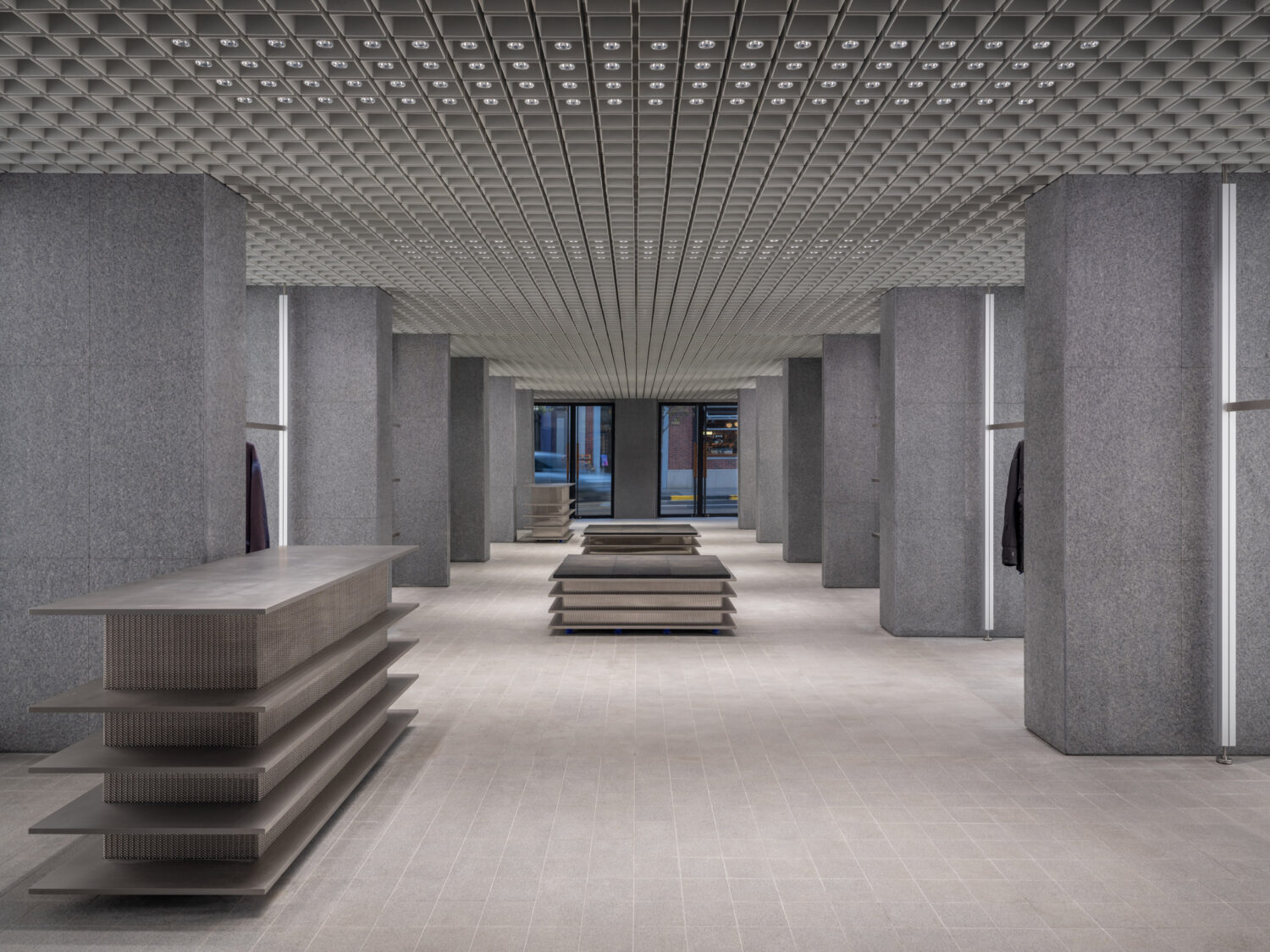 The concept for the flagship store is to introduce spatial qualities and principles found in monumental architecture from different epochs, such as factories, temples, and galleries. This approach creates a unique and abstract interpretation of these forms, resulting in a space that feels both expansive and timeless, transcending the industrial aesthetic typically seen in retail.