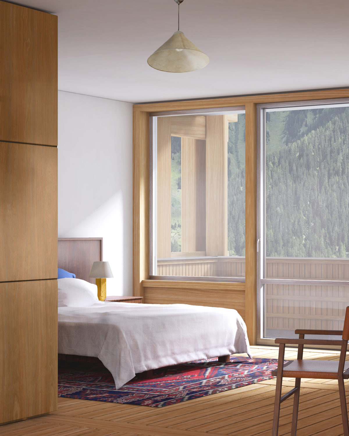 Local sustainability The aim of the project is to favour authentic and inclusive experiences, both for its visitors and local community. This has required the design to be developed closely together with the community, resulting in a strong relation to the site and its inhabitants. Through active participation the hotel seeks to become a genuine member of the community and contribute to the future of Acquarossa’s social and economic development. As an example, the shared spaces between the buildings are designed both for the hotel guests and for the locals of the nearby village. A plaza that has similarities to a town square, and a number of small gardens are coupled with restaurants and bars. These spaces frame spectacular views of the surrounding mountains while providing a platform for social activities. The result is a building where both public and private spaces contribute to a sense of place that is unique for Acquarossa.