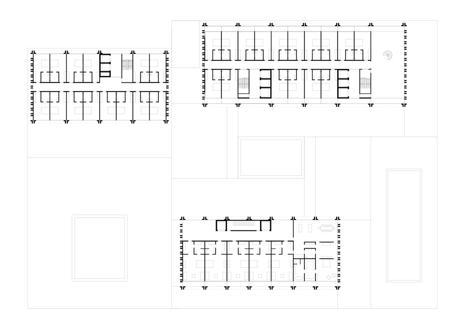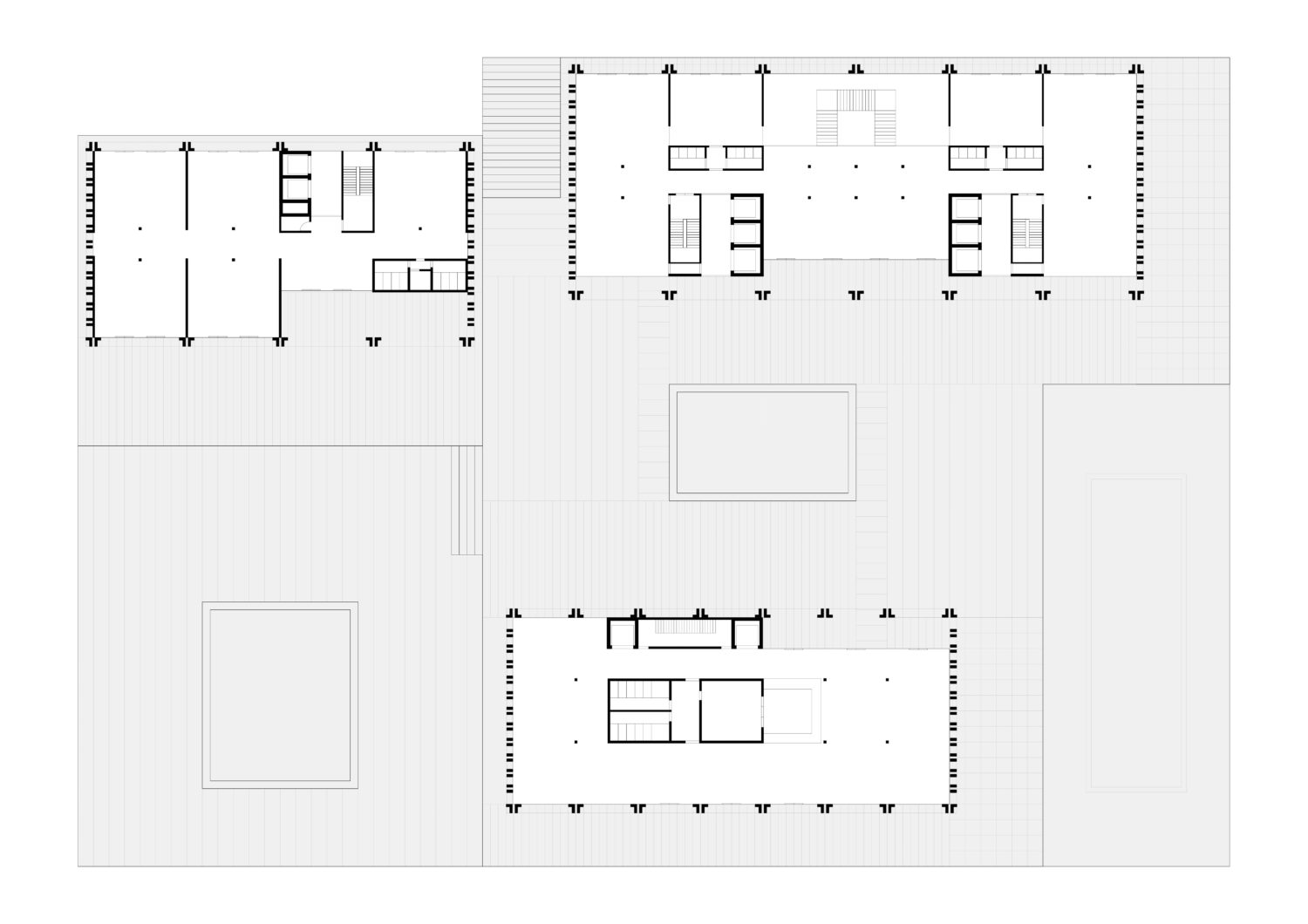 The hotel consists of three buildings that sit together on a base to form a new village like collective. The main buildings run perpendicular to the site’s contours and frame the surrounding landscape, while the plinth safeguards the natural preservation area by containing and concentrating supporting programmes. This approach achieves a strong connection to the landscape while responding to the urban context by providing a building where both public and private spaces contribute to a sense of place that can be integrated and enjoyed by the community of Acquarossa.