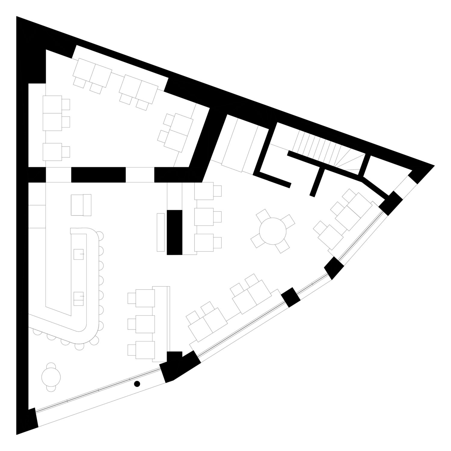 Elliot’s is a restaurant and bar situated in Hackney, London, designed as a social place to meet anytime of the day, whether it is for brunch, dinner or late night drinks. The space caters for different sized groups and moods, with a range of atmospheres offered through a large outdoor seating area, a generously dimensioned bar and two dining rooms; one airy and lively room towards the front, and an intimate, more private room towards the rear. The design is based on pure and elegant geometrical shapes, resonating with the style of cooking of the restaurant.