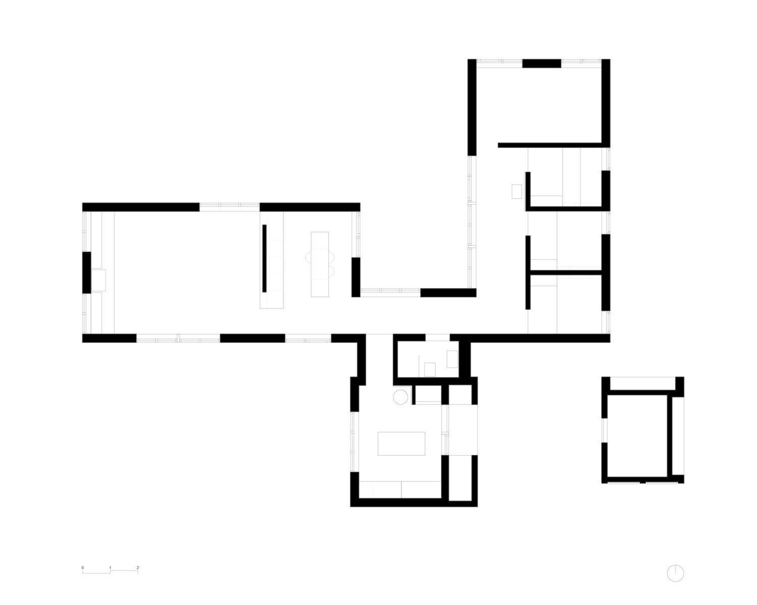 In this project, the whole site is considered a space for living, which allows each space to have its own unique quality, both inside and outside. The plan of the house both unites individual spaces and establishes distance in between them. The orientation and form is the result of different types of use between the intimate and open spaces and a desire to make the most of the varying quality of light and views that the site has to offer.