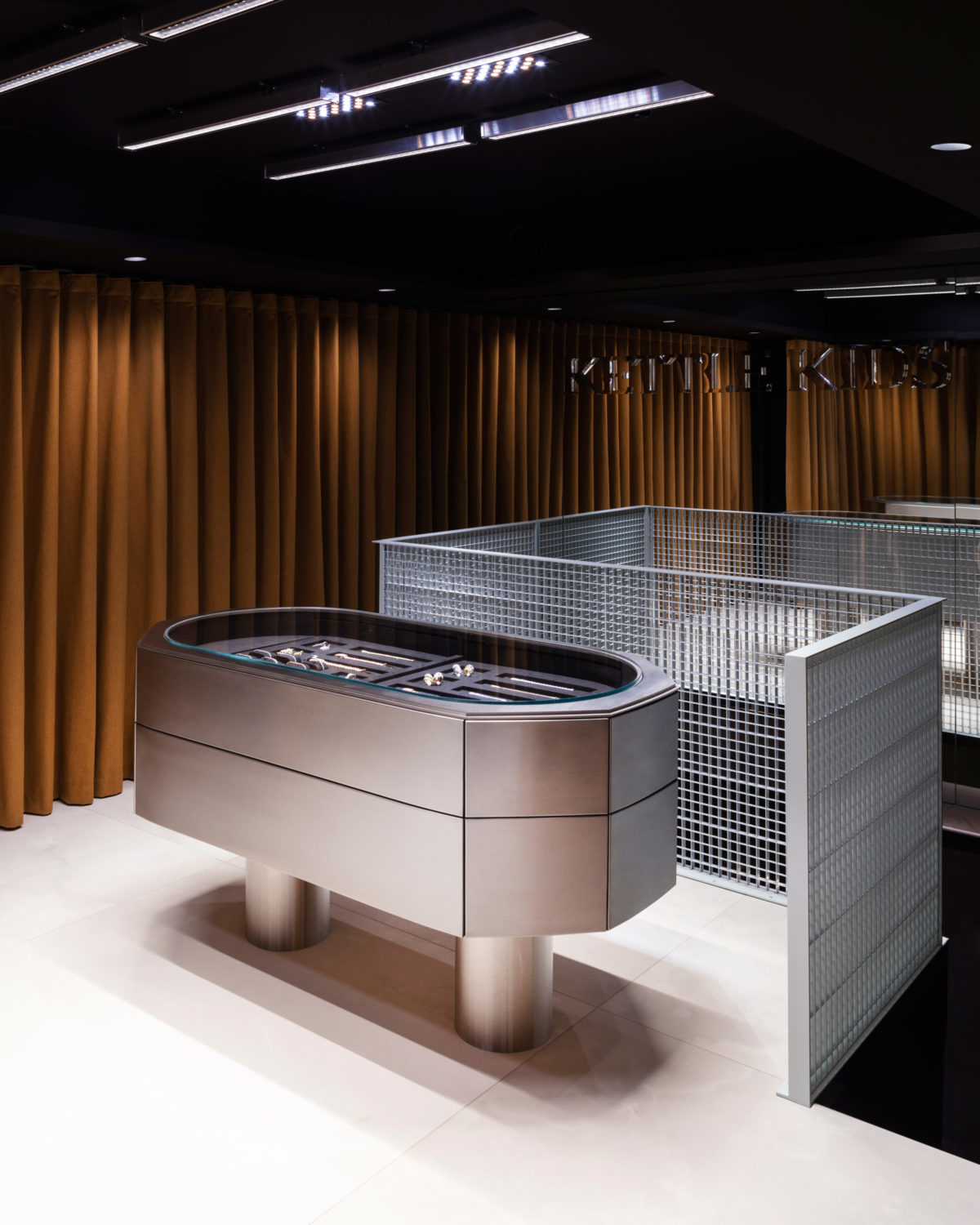 Kettle Kids Mayfair is a new flagship store located on Maddox Street in central London, designed by Hesselbrand. The project represents the first iteration of Kettle Kids' new spatial identity, developed by Hesselbrand alongside the new graphic identity created by Two Times Elliot. The spatial identity aims to embody both the traditional high precision craft of fine watches and the fast-moving, youthful energy of the jewellery world, where Kettle Kids have a strong cult following.