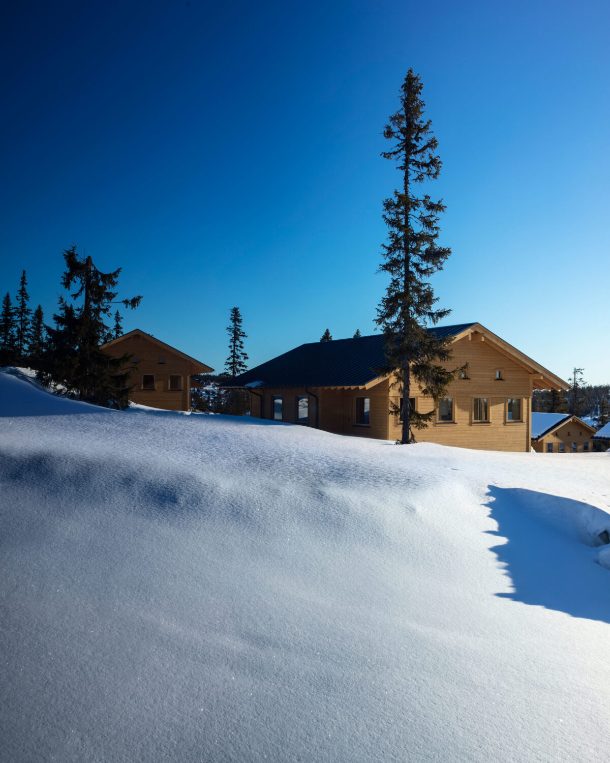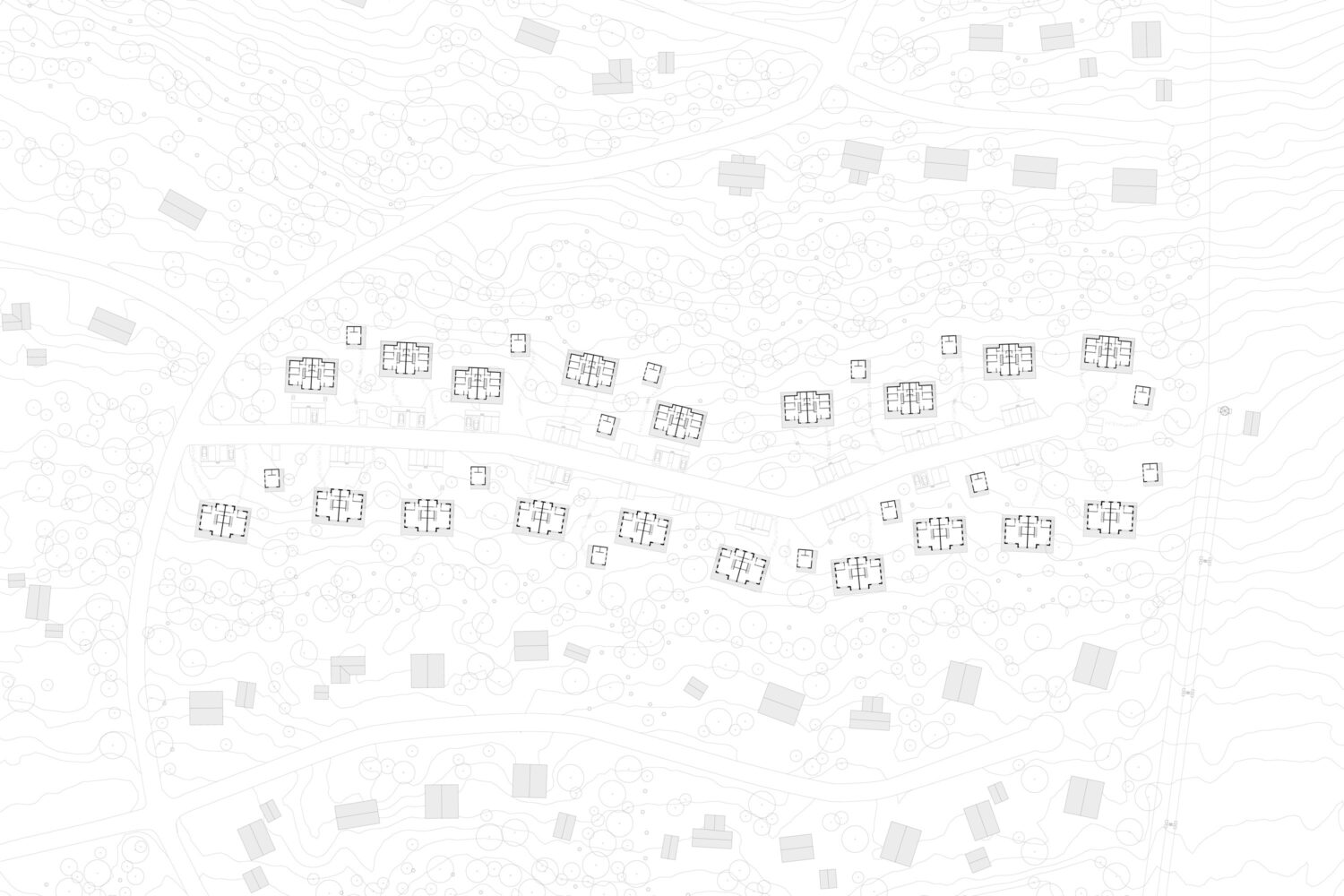 Vemdalen Villas is a master plan and design of 38 semi-detached holiday homes set on a mountainside site in Vemdalen, Sweden. With direct access to the slopes and overlooking the beautiful Valley, each plot accommodates a main house and a guest house. Their relation to each other and their neighbours have been designed to form smaller outdoor spaces and trekking paths in between the buildings to give the area a character more reminiscent of a village than a street.