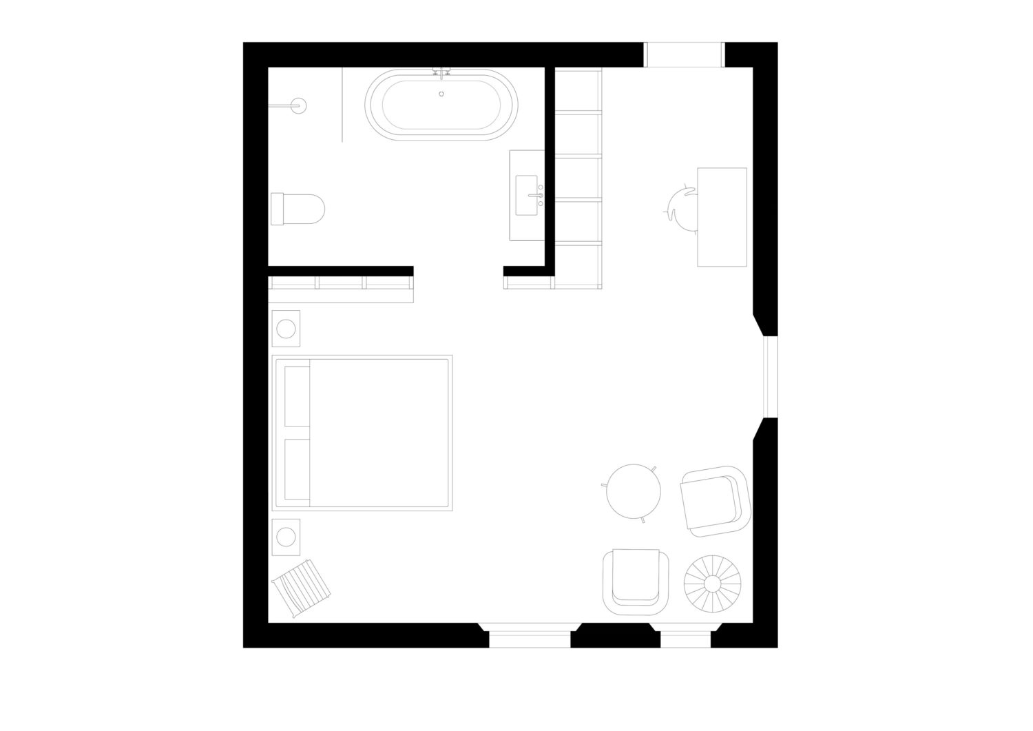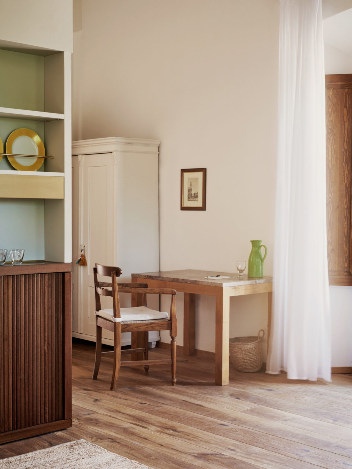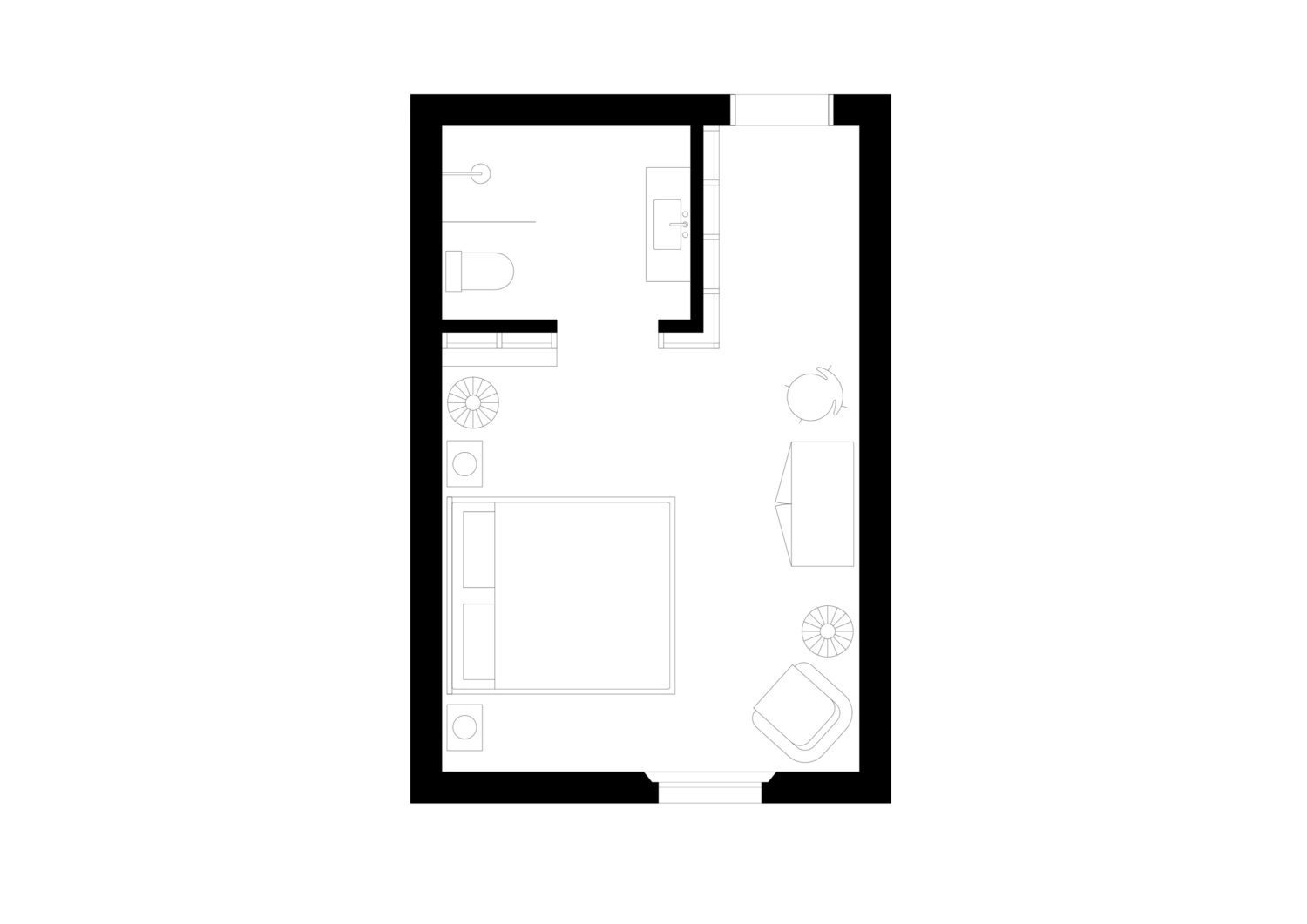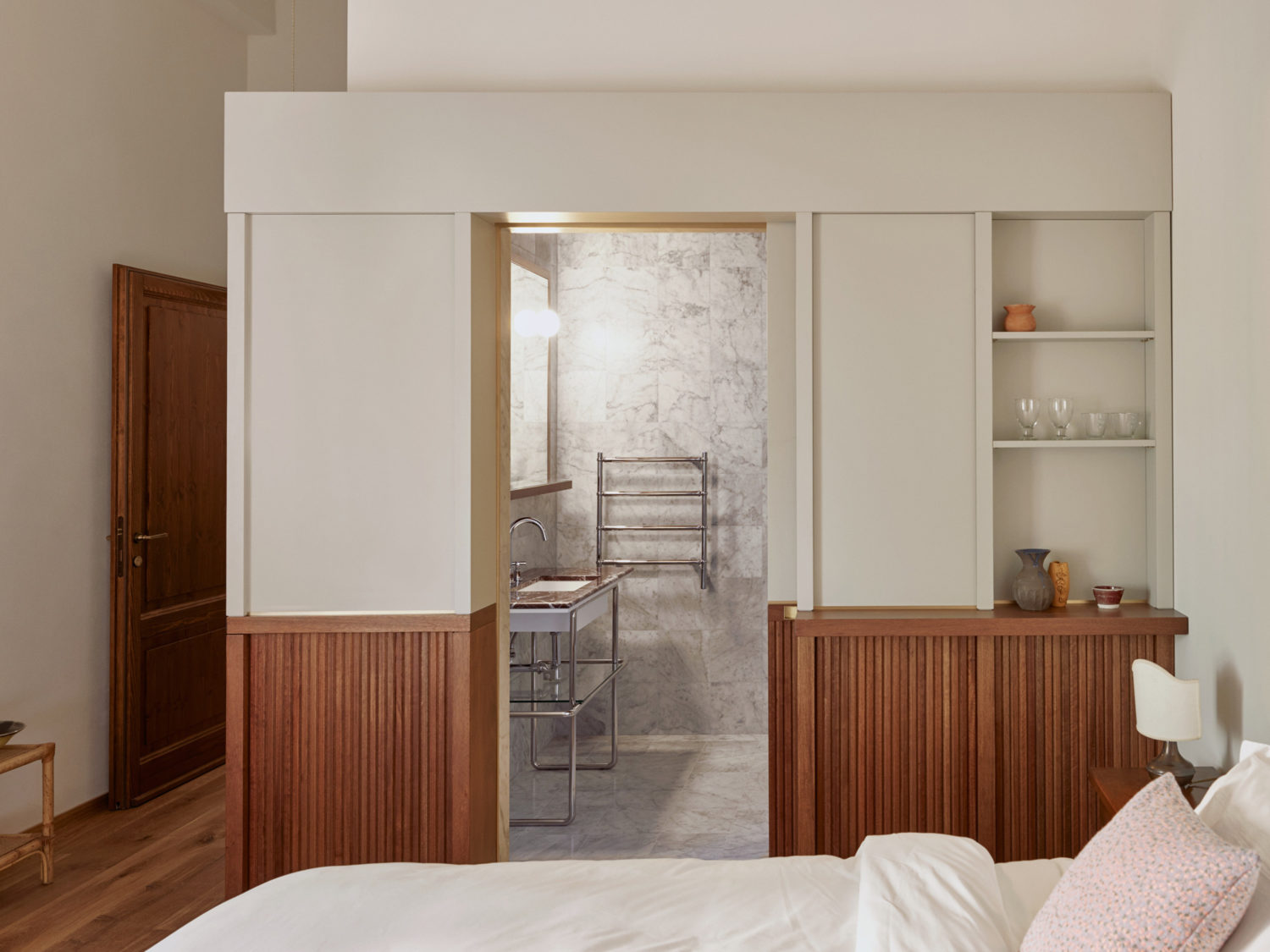 The two floors of the building have been reconfigured with new plans that allow users to choose how social or intimate they want to be, both in the shared spaces and inside the bedrooms. The main principle for the guest rooms is to create a range of standards that transcends the traditional hotel star system. The design aims to express the meeting between the classical and contemporary, where the natural meets the artificial and the beauty found in the intersection of handmade and machine made objects.